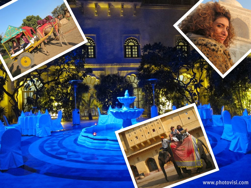 Still traveling through Northern India. This past week my aunt and I have made it to Agra, home of the Taj Mahal (top right), Pushkar, home of the Brahmin Temple (top left, my aunt and I on a camel cart), and to Jaipur, the capital of the state of Rajasthan (bottom right, my aunt and I in a howdah atop an elephant on our way up Amber Fort).